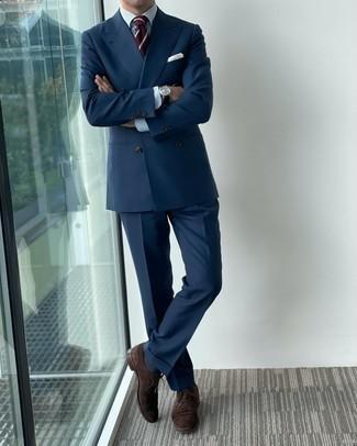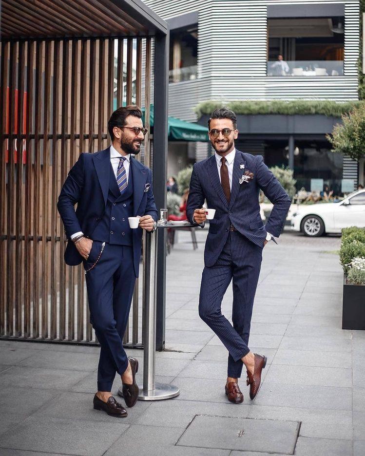 Embracing the classic combination of dark brown Oxfords with navy suits is a sartorial choice that effortlessly merges sophistication with versatility. The rich, dark tones of the brown Oxfords complement the deep navy hue of the suit, creating a harmonious and refined ensemble suitable for various occasions. This pairing strikes a balance between formal and approachable, making it ideal for both corporate settings and semi-formal events. The dark brown Oxfords add warmth and depth to the overall look, enhancing the timeless elegance of the navy suit. Whether you’re attending a business meeting or a social gathering, this combination exudes a confident and polished aesthetic, showcasing the seamless integration of classic style elements.