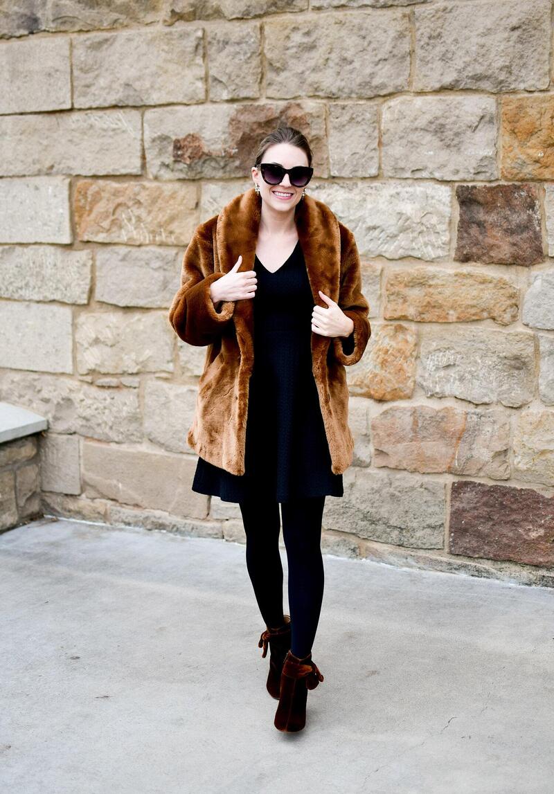“A little black dress serves as a timeless and versatile wardrobe staple, perfect for a variety of occasions. For added glamour and warmth, add a luxurious brown faux fur coat, which not only elevates the outfit but also adds texture and visual interest. Complete the ensemble with a statement necklace to add sophistication and draw attention to the neckline. Pair the look with black heels. There are also many shoes for a black dress that have a classic look but still maintain a sleek and luxurious appearance, making them suitable for high-end events or evening outings where style and elegance prevail.”