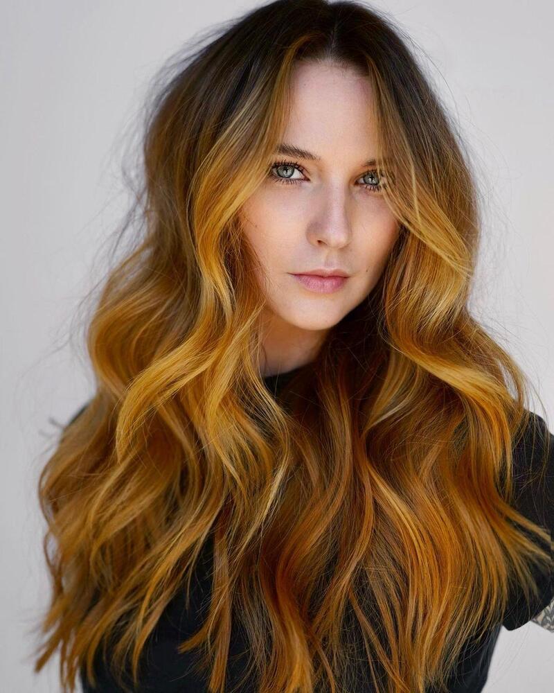 If your complexion has a greenish or yellowish undertone and tans easily, you likely have olive skin. Hair colors such as rich auburn, warm chestnut, and deep brown shades can beautifully enhance your features. These hues also create stunning combinations. For instance, Ashley, the colorist and owner of The Artery in Ferndale, Michigan, added vibrant pumpkin orange highlights to her client’s black hair, adding a lively touch.