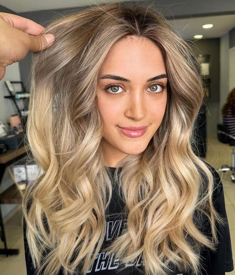 Ask yourself if your skin light in color, does it burn easily in the sun, and does it lack pronounced undertones? If you answered yes, you likely have fair or pale skin. For those with fair complexions, lighter blonde shades with deeper shadow roots are ideal for enhancing green eyes. LA-based colorist Meg Mizuno expertly achieved a beautiful interplay of various blonde tones, adding depth and contrast for a striking look.