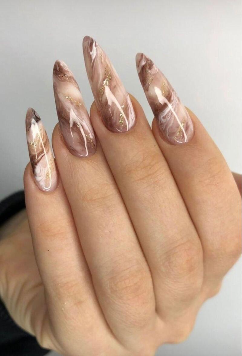 If you love the multicolor look of water-marble nails, give them a New Year’s upgrade by using shimmery nail polishes. For an extra festive touch, add a glittery top coat for a confetti-like effect that’ll make your nails sparkle all night long.