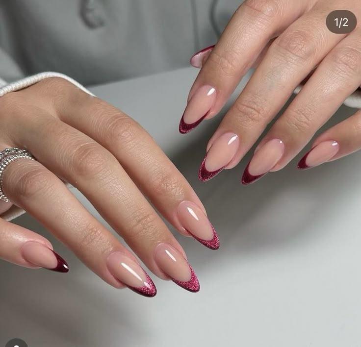 GLITTER FRENCH TIP ALMOND NAILS