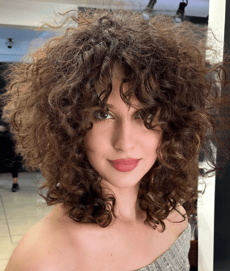 Shoulder-length haircuts are perfect for showcasing naturally curly hair. The key is that shorter curls are lighter and more defined, enhancing your curl pattern. For added flair, consider adding playful curly bangs to your look.