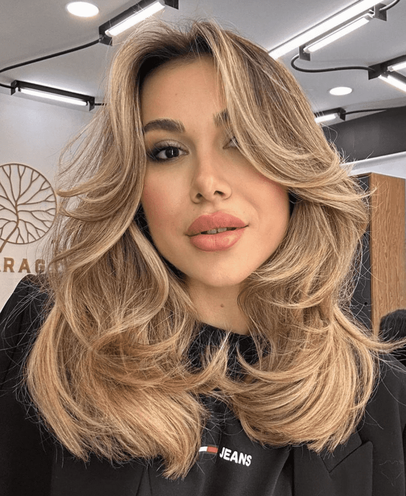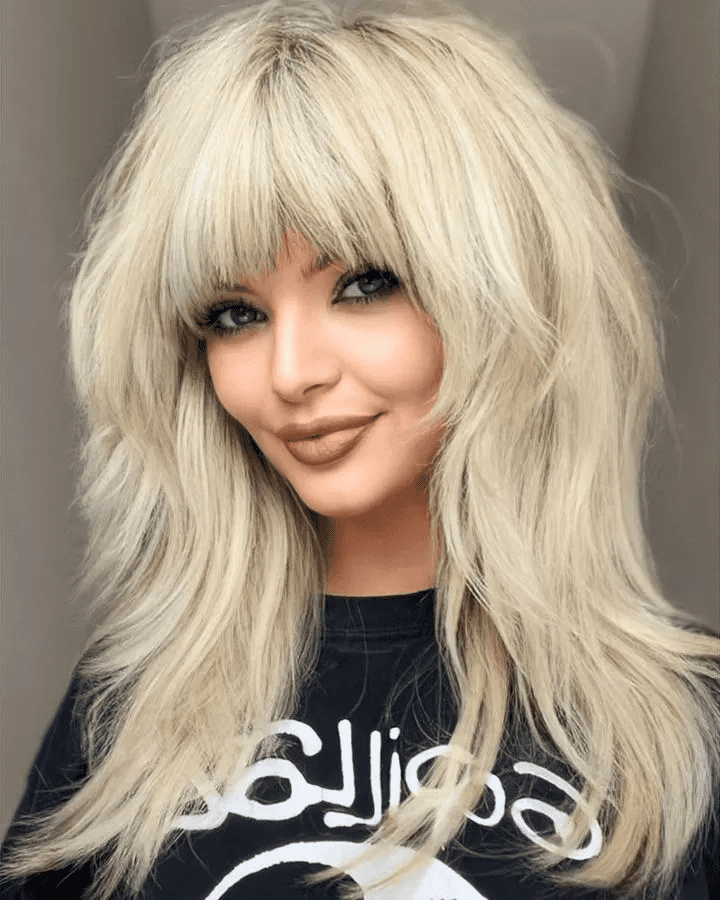Blonde hair naturally draws attention, so all that’s left is to pick a haircut that enhances your gorgeous locks. If you’re open to adding some impressive volume, consider opting for a layered style like this one.