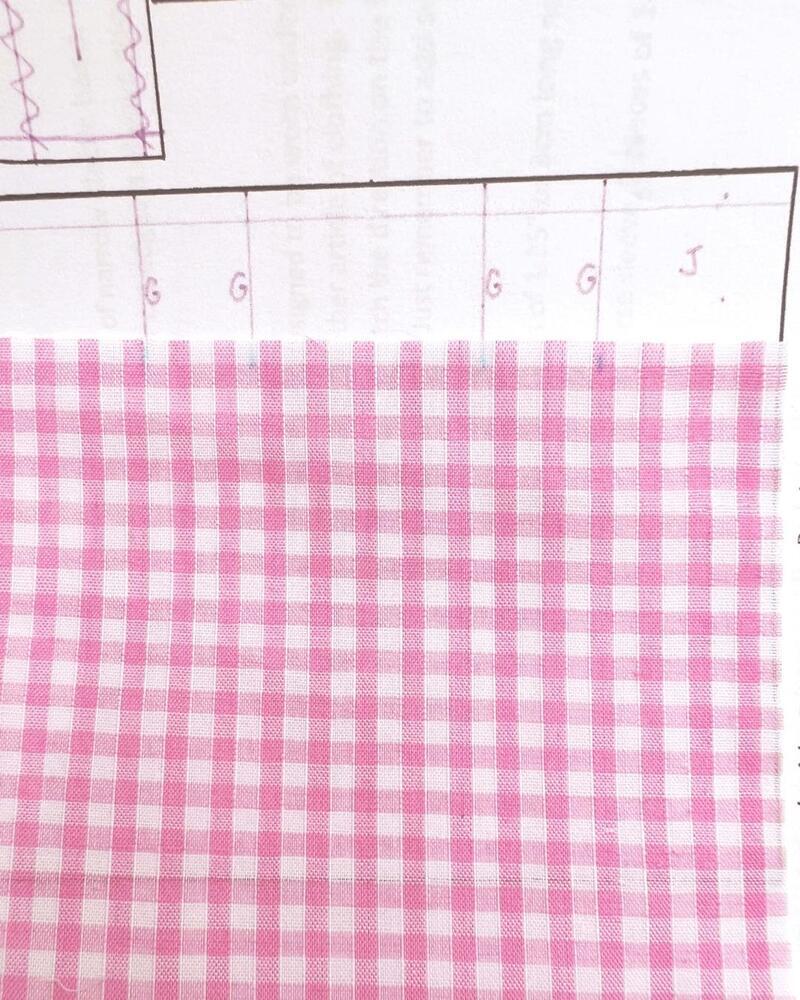 - Pink gingham fabric with small squares (4-5mm or 1/8”)