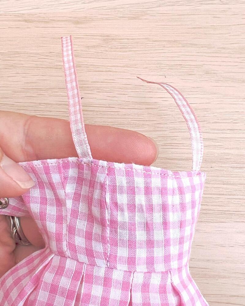 - Approximately 30cm of matching gingham ribbons in both 5mm and 1cm widths (for straps and belt)