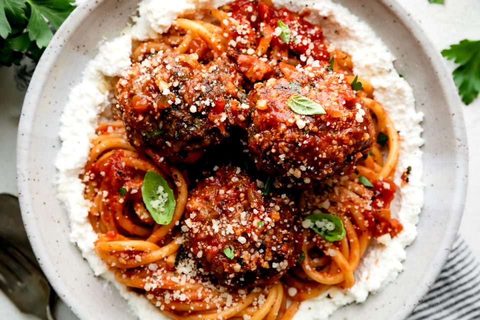 These Italian-style meatballs are incredibly rich and flavorful, made with a perfect blend of ground beef and pork, plus a generous mix of fresh aromatics like onion, garlic, and basil. Soaking the breadcrumbs in ricotta cheese creates an irresistibly light and tender texture. Baked, broiled, and then simmered in a simple yet delicious tomato sauce, these ricotta meatballs turn out beautifully golden-brown on the outside while remaining melt-in-your-mouth tender inside.