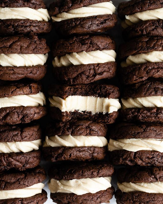 These brownie cookie sandwiches are decadently rich and fudgy, filled with swirls of light, fluffy cookie dough buttercream. Bet you can’t resist!