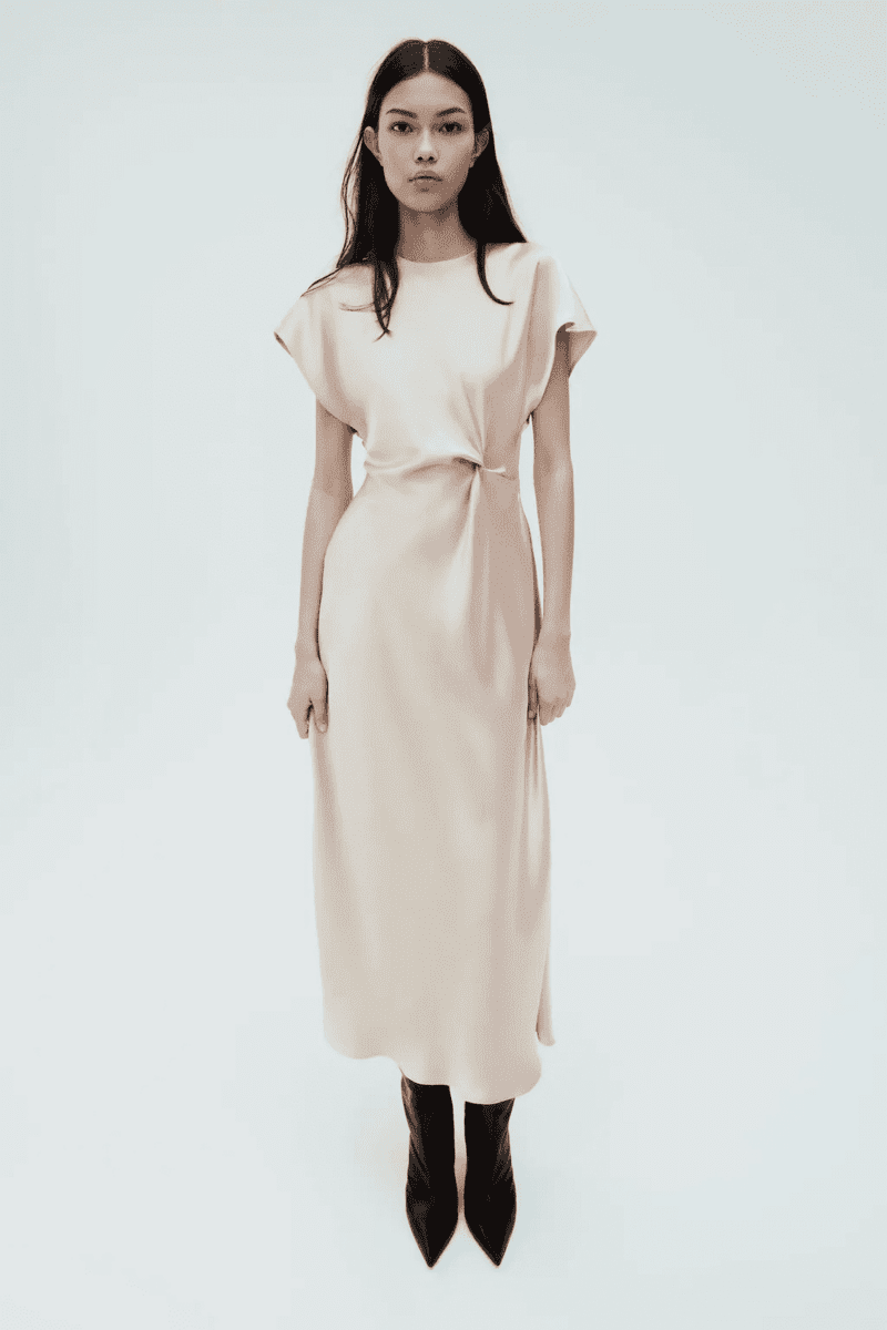 ZARA RUCHED WAIST SATIN EFFECT MIDI DRESS