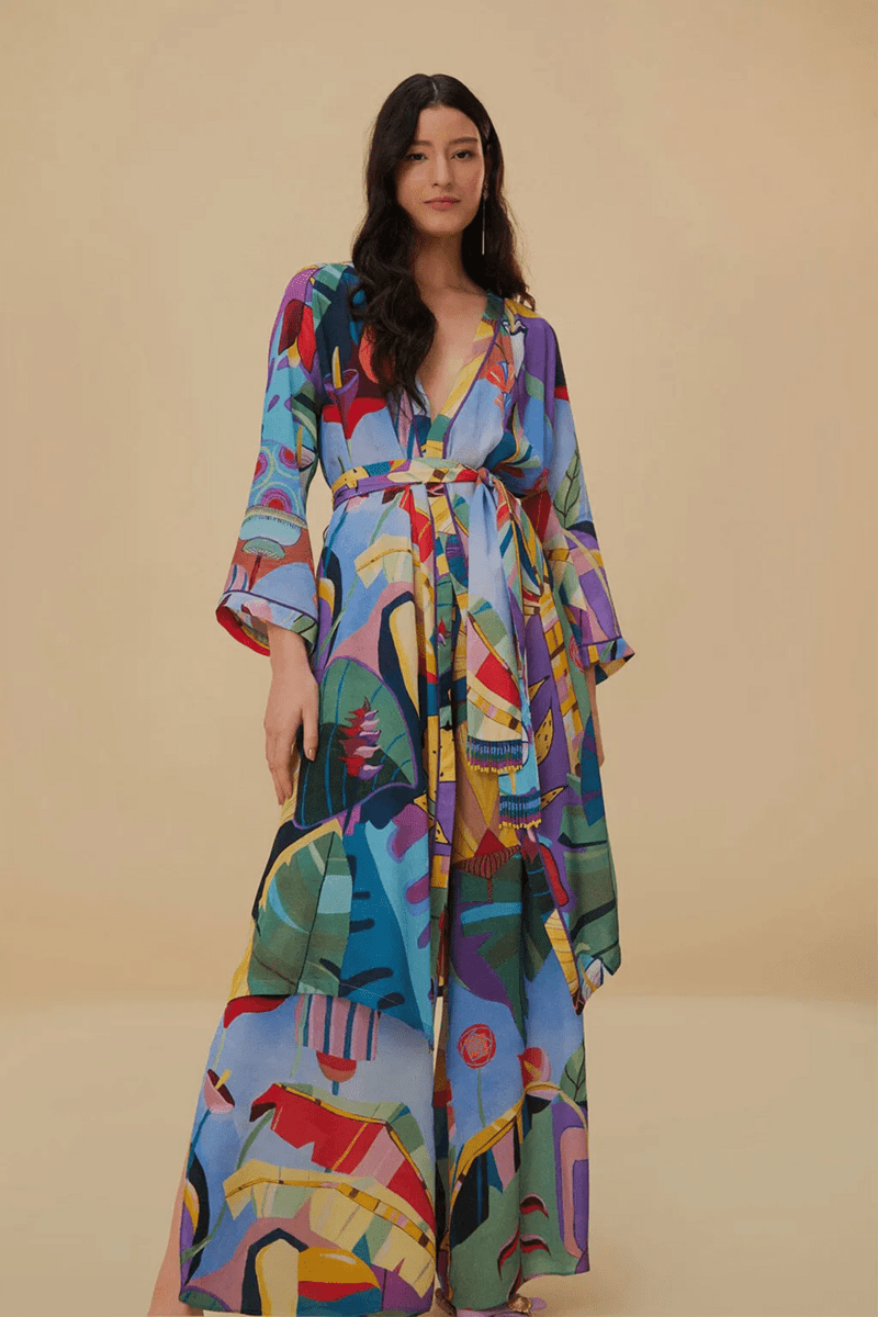 FARM RIO TROPICAL SCENARIO MULTICOLOR LONG KIMONO