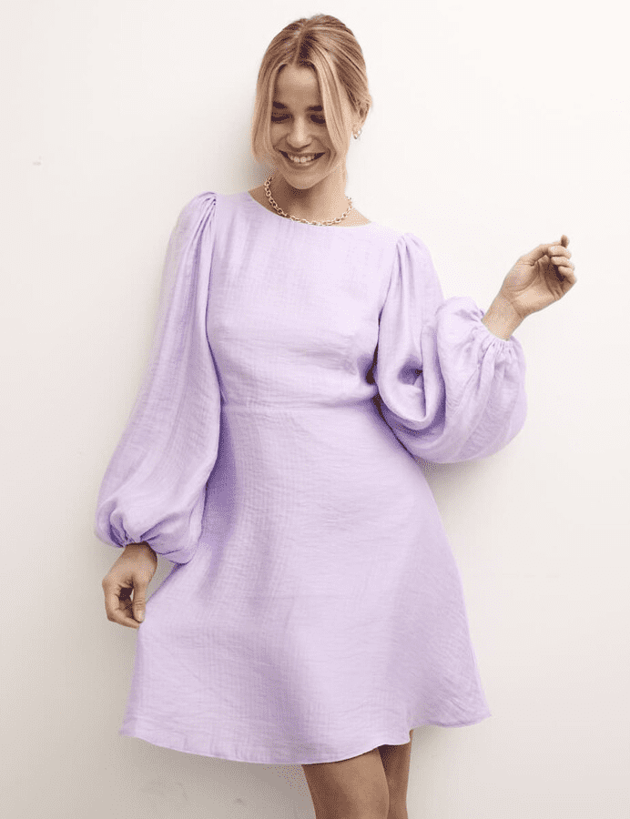 The Lilac Zola Mini Dress is a pretty and stylish outfit for any occasion. Made from soft fabric, it has a fitted top and a flared skirt that looks fun and cute. The light purple color gives it a sweet and fresh look, perfect for spring and summer. With short sleeves and a mini length, it is both comfortable and fashionable. You can wear it with heels for a fancy event or with sandals for a casual day out. The Lilac Zola Mini Dress is a lovely and versatile piece for any wardrobe.