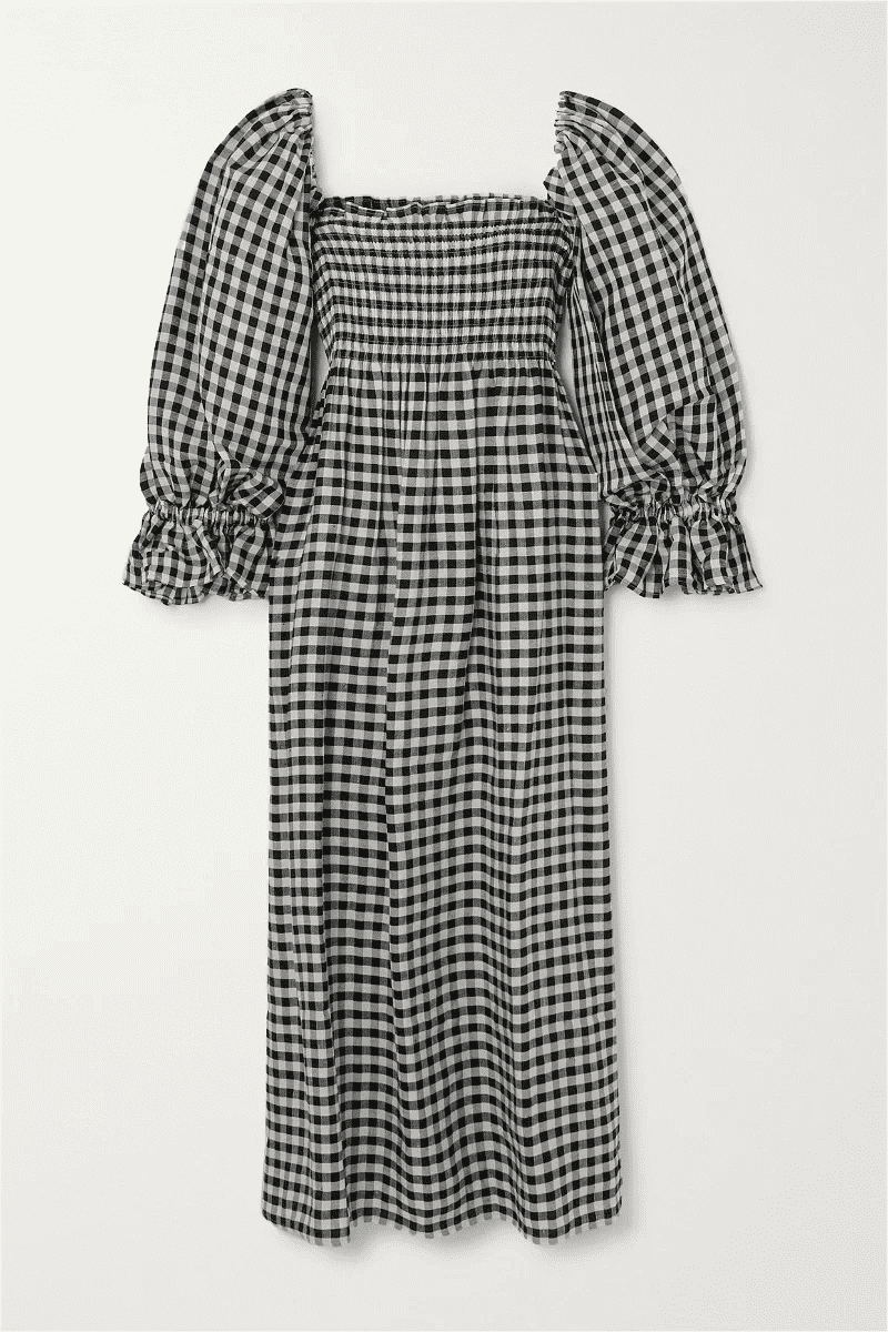 The Sleeper Atlanta Off-the-Shoulder Shirred Gingham Linen-Blend Midi Dress offers a charming blend of comfort and style, perfect for warm-weather days. Made from a breathable linen-viscose blend, this dress is ideal for those seeking effortless elegance. The shirred bodice creates a flattering silhouette that cinches the waist, while the off-the-shoulder sleeves add a touch of romantic whimsy. In a classic gingham check pattern, this versatile dress can be dressed up with heels for a summer evening out or paired with sandals for a picnic in the park.