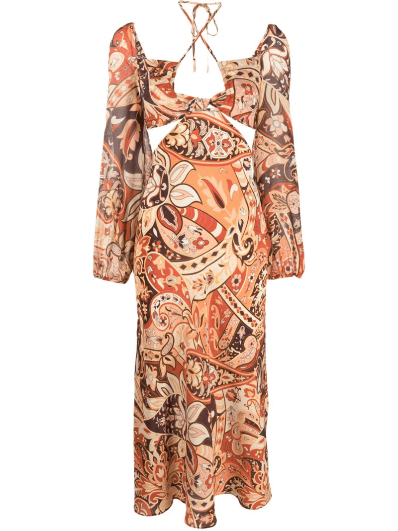 MARIANNE PAISLEY SHIRRED MIDI DRESS