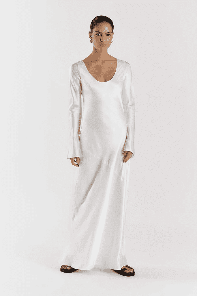 DISSH LEA WHITE SLEEVED SATIN MAXI DRESS