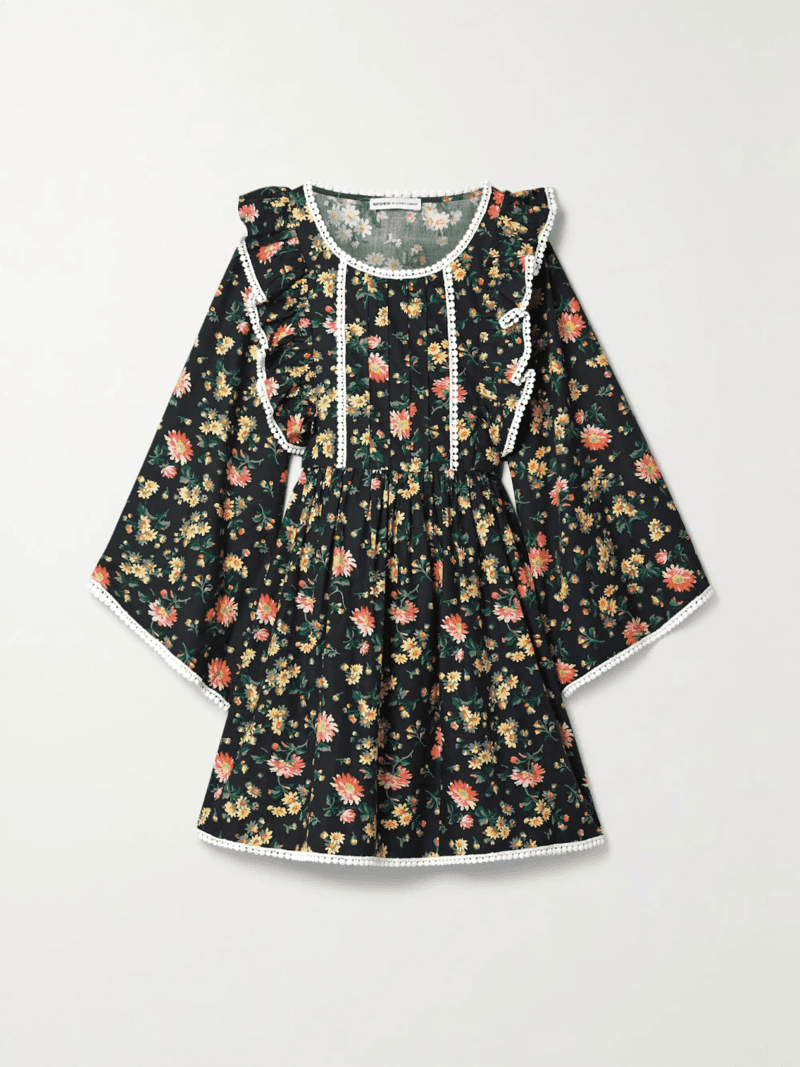 BATSHEVA + LAURA ASHLEY RHYS BELTED CROCHET-TRIMMED COTTON-POPLIN MINI DRESS