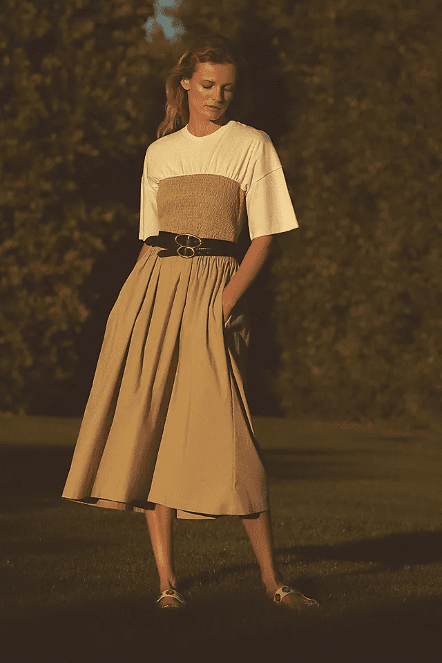 The Maeve The Lilou Twofer Midi Dress is a versatile and stylish option for your summer wardrobe. Crafted from a comfortable blend of cotton and polyester, this dress offers a relaxed fit that drapes beautifully. The key detail of the Lilou Twofer is its two-in-one design. A flattering bodice with a potentially squared neckline or scoop neck (depending on how you choose to style it) sits atop a tiered skirt that adds volume and movement. This creates a silhouette that’s both comfortable and eye-catching. Whether you leave the bodice loose for a casual vibe or cinch it with a belt for a more defined waist, the Maeve The Lilou Twofer Midi Dress allows you to play with different looks and find what flatters you most.