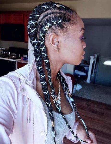 Goddess braids with beads create a captivating and personalized look by combining the elegance of large, cornrow-style braids with the vibrant, decorative touch of beads. This hairstyle, rich in cultural heritage, serves as a contemporary symbol of beauty and identity.