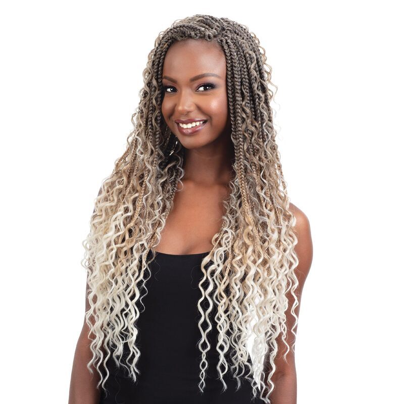 Goddess box braids merge two popular protective styles into a single, low-maintenance look. These braided wigs blend the bohemian, crimped texture of goddess braids with the neat uniformity of classic box braids. Featuring defined parts and braided lengths, goddess box braids offer versatile styling options—wear them down, pulled up, or twisted into a top knot. Enjoy the ease and flexibility of this dynamic style throughout long summer days and weekend getaways.
