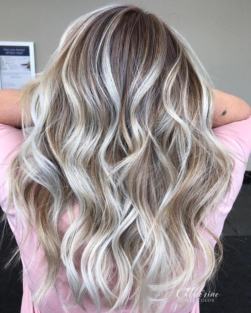Add shimmer and shine to long blonde hair with silver-toned highlights. Place them strategically to frame the face or scatter them throughout for an edgy, artistic effect.