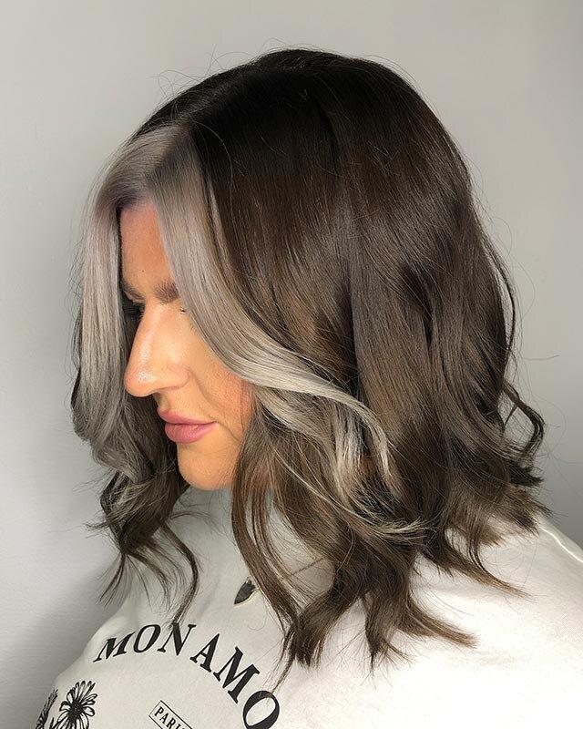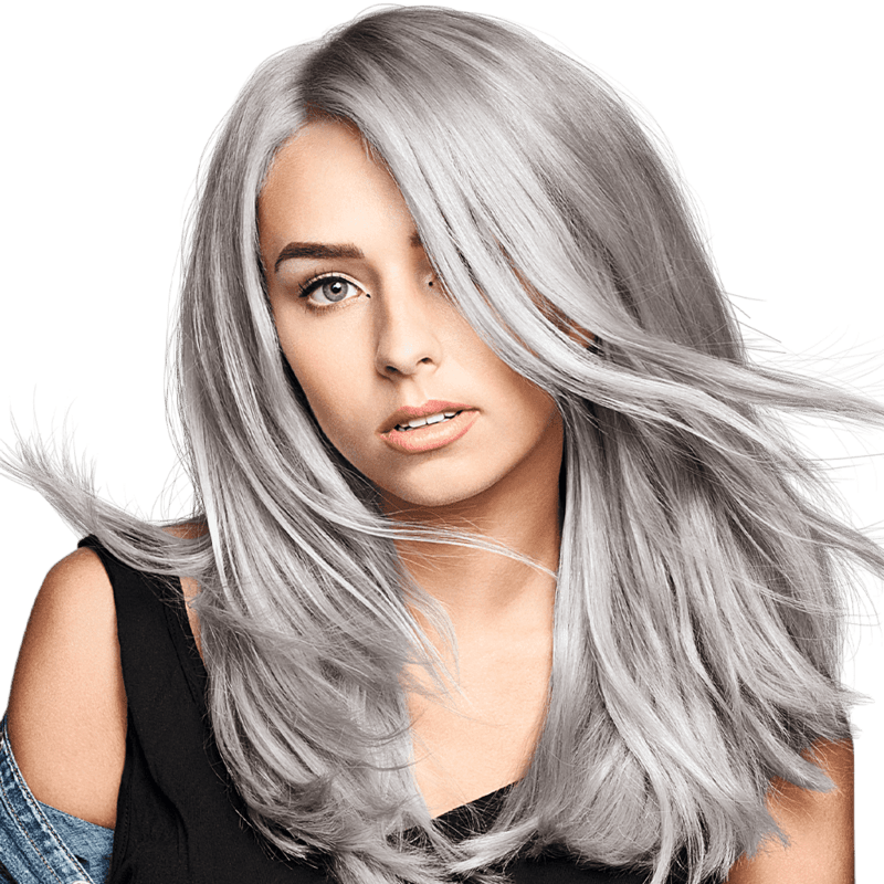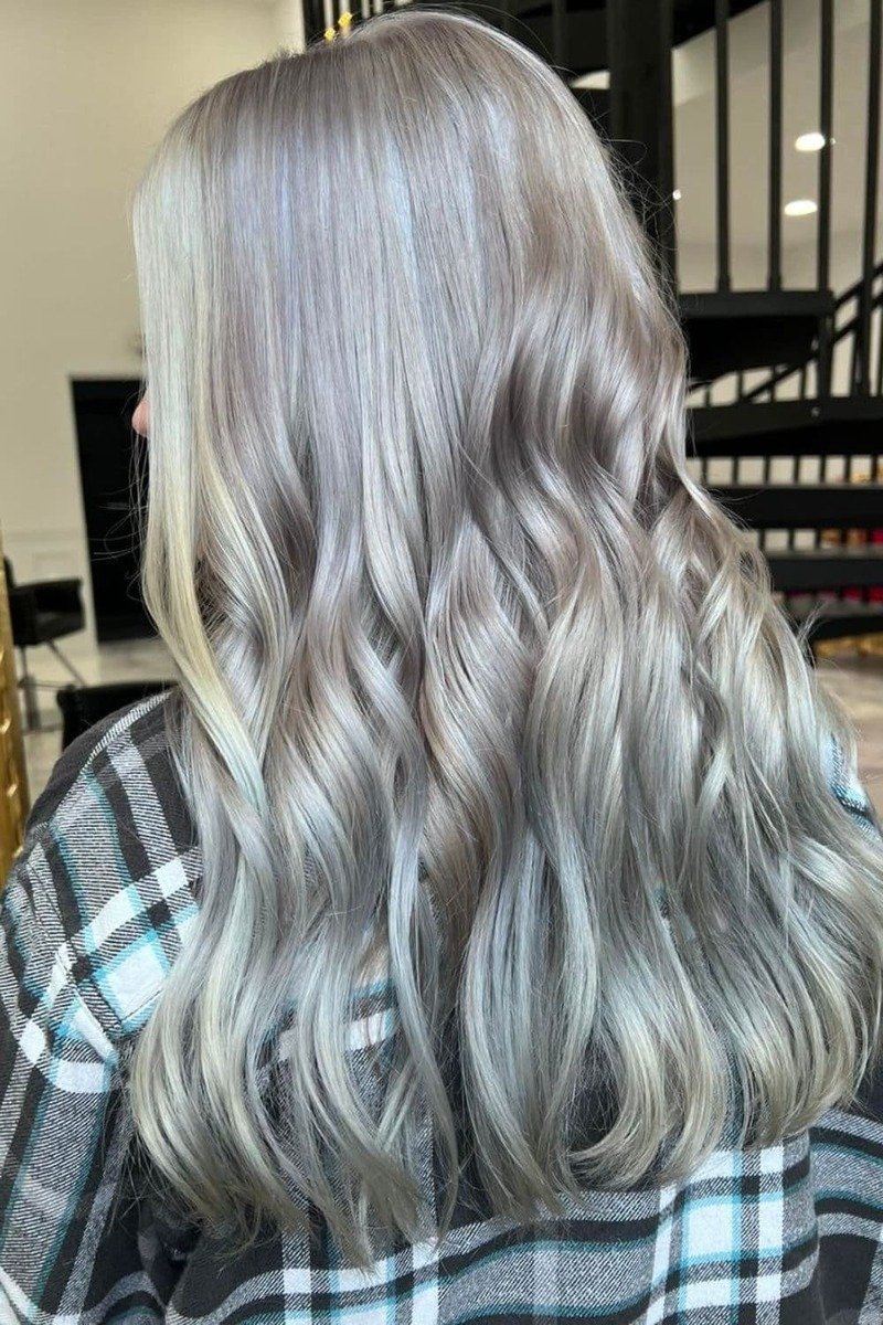 Blend the coolness of ash tones with silver hair color for a muted, smoky, and refined appearance. This timeless color combination enhances a range of skin tones and creates a striking contrast with various eye colors.