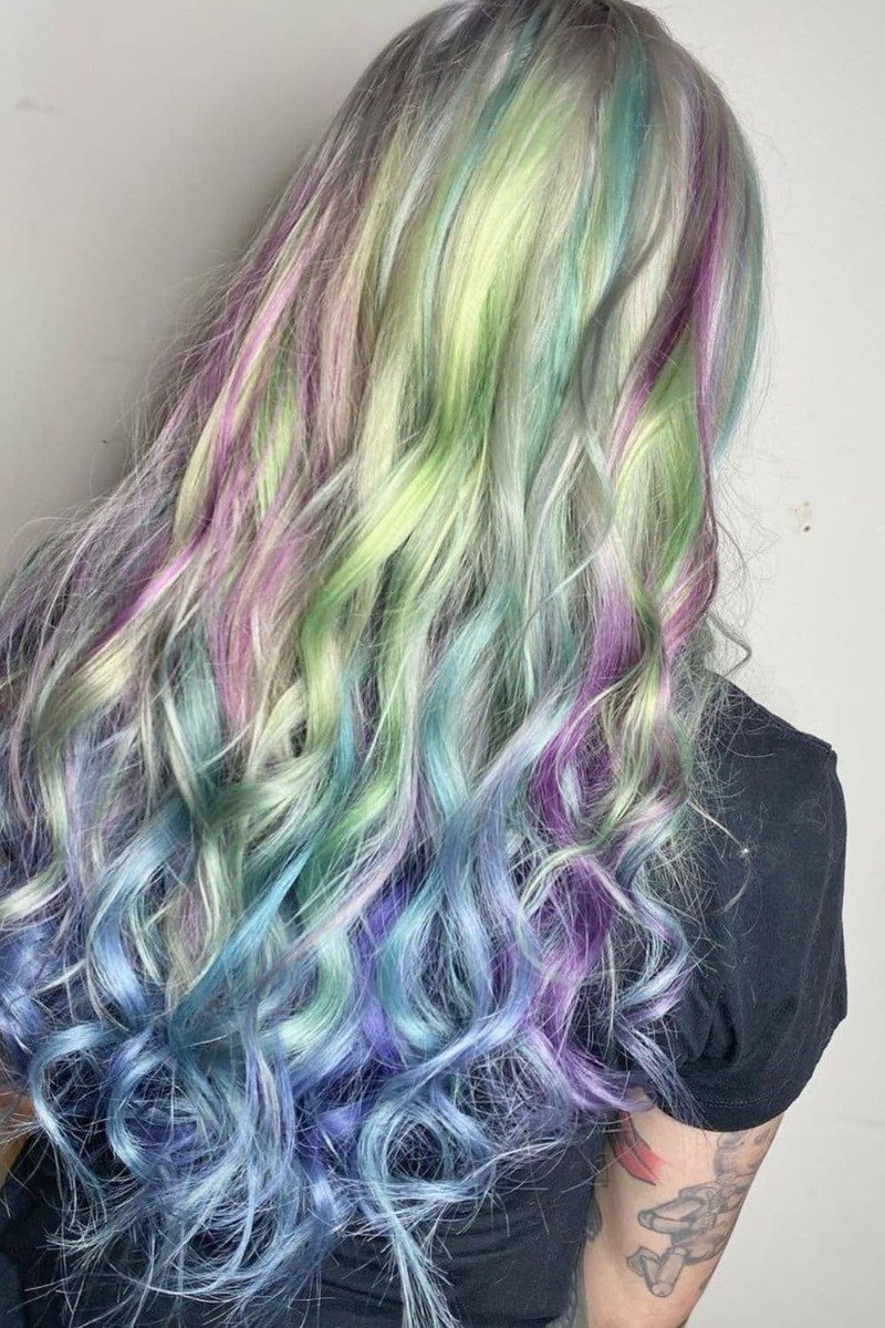 Mermaid hair is a vibrant trend that incorporates multiple colors to create a fun and enchanting look. This dynamic style allows for a creative and artistic expression, showcasing your charisma and charm through a spectrum of captivating hues.