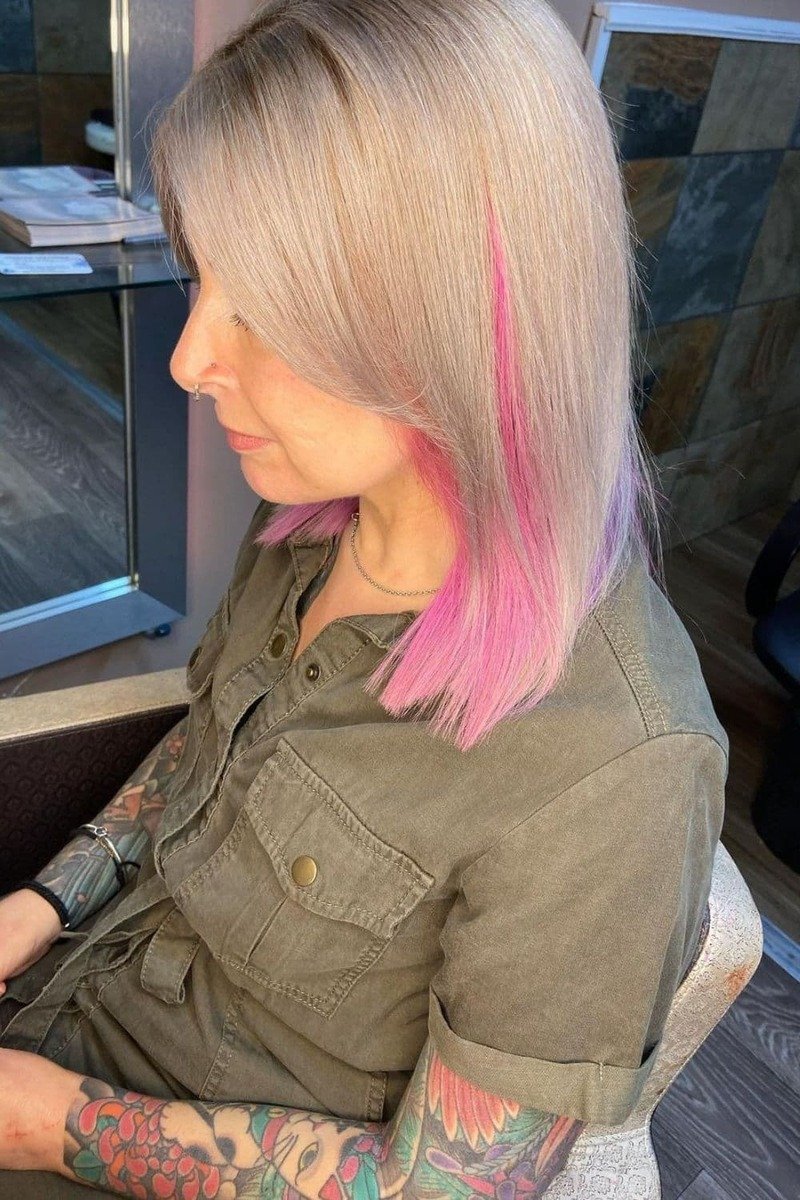 Incorporating shades of pink into your silver hair creates a vibrant, fashion-forward contrast that works with any hair type, length, or texture. Consider a silver-pink ombre or balayage, ranging from soft pastels to bold hot pinks or magentas. Alternatively, you can add pink highlights or lowlights for a more classic touch.