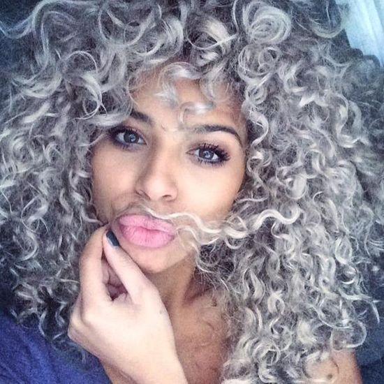 Curly hair looks stunning in silver. This bold and beautiful hue complements all curl patterns and lengths, highlighting your hair’s unique texture.
