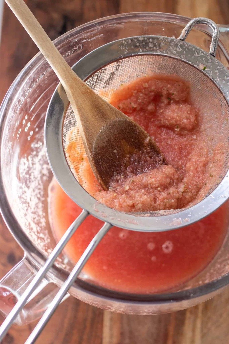 I highly recommend straining this to avoid the pulp. It easily strains through a fine mesh strainer (like the one pictured below), or you can use a cheesecloth if you have one available.