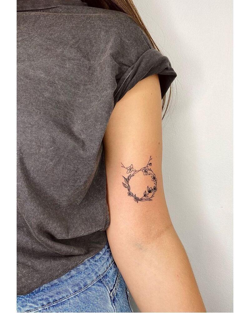 Taurus tattoos don’t have to be large and bold like the bull they represent. You can personalize them by adding your favorite flowers or the Taurus birth flowers, such as poppies or lilies. This can give the tattoo a more personal touch. For example, in this shoulder Taurus tattoo, the flowers, leaves, and shading add a feminine feel to the design.