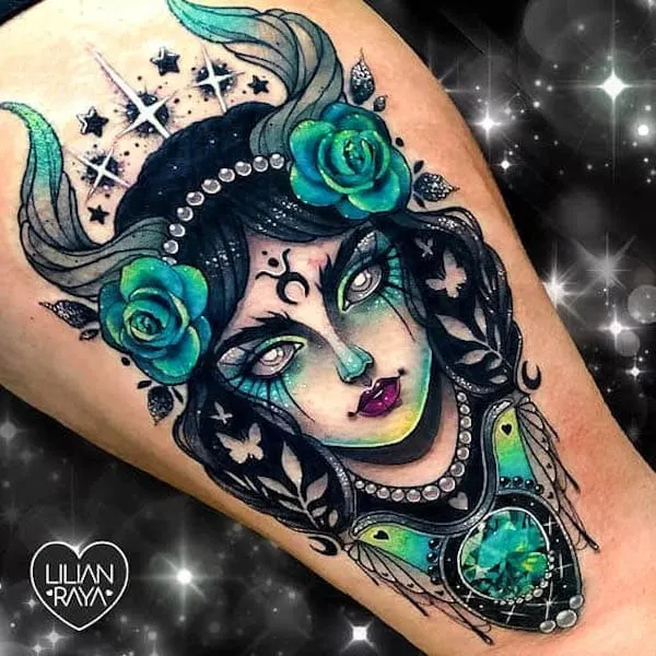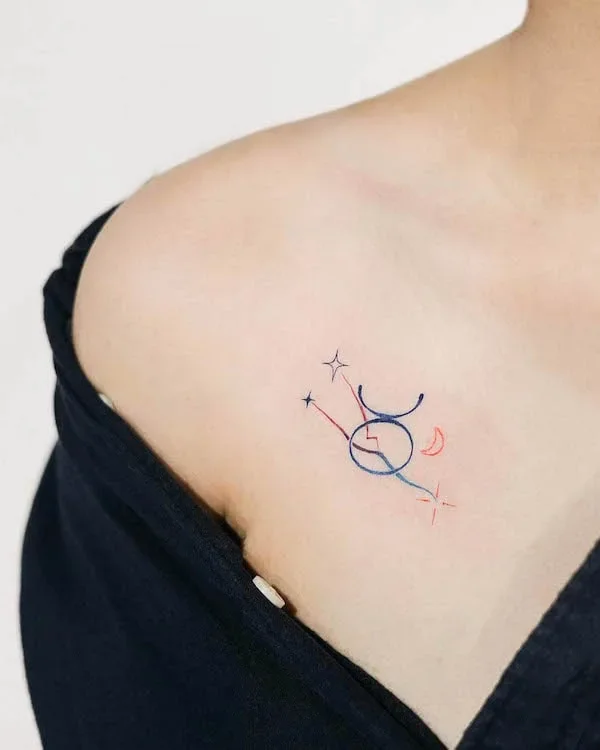 Though the glyph and constellation are fairly simple motifs, incorporating colors can make the tattoo more captivating and dynamic.