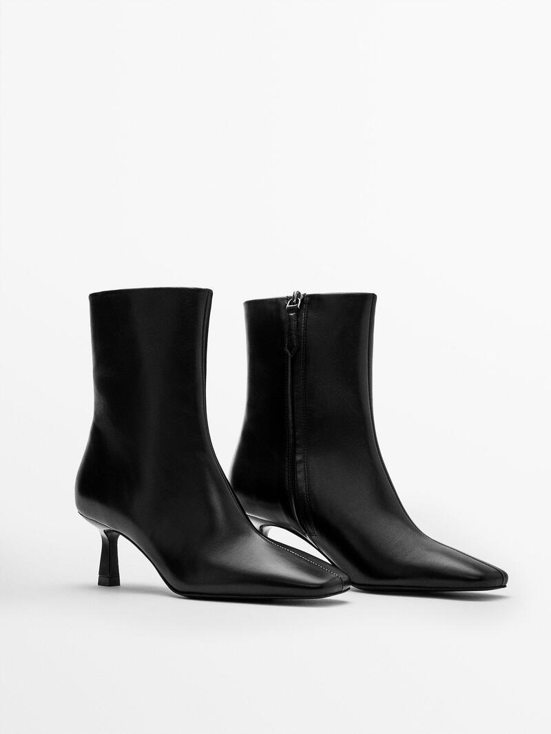 M&S COLLECTION WIDE FIT LEATHER KITTEN HEEL ANKLE BOOTS