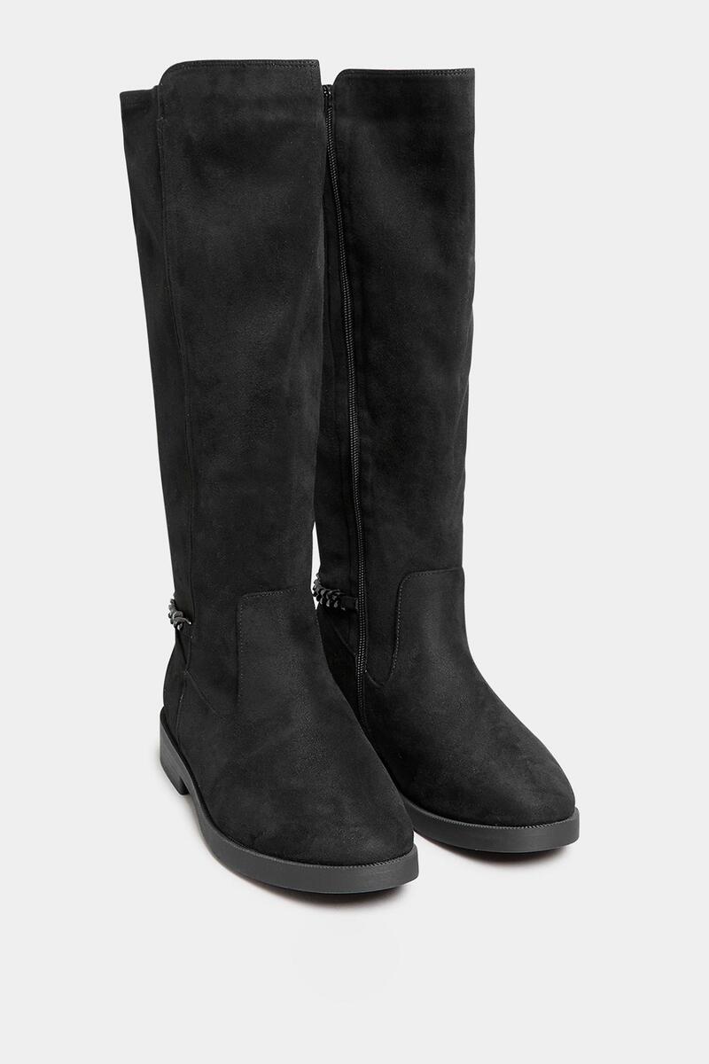 YOURS CURVE BLACK SUEDE KNEE HIGH CHAIN DETAIL BOOTS