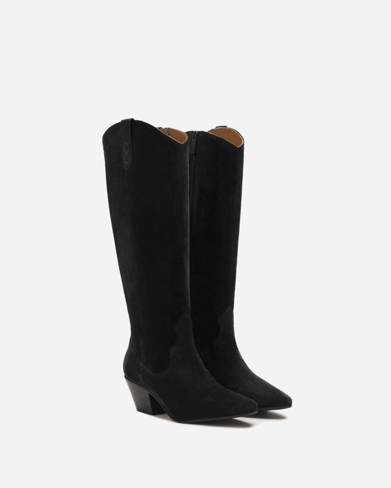 DUOBOOTS SAFFRON KNEE HIGH BOOTS IN BLACK SUEDE