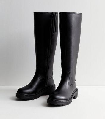 NEW LOOK EXTRA CALF FIT BLACK LEATHER-LOOK CHUNKY KNEE HIGH BOOTS