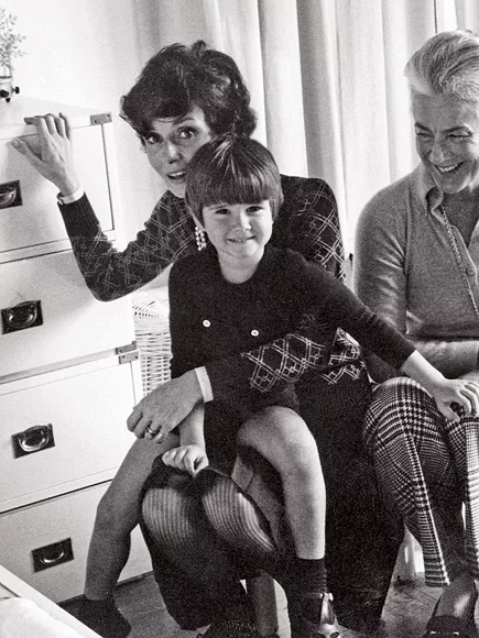 Luca, seated on his mother Audrey Hepburn’s lap alongside her best friend Connie Wald (right), is captured in a warm moment in Rome in 1973. Today, Luca resides in Rome with his own family.