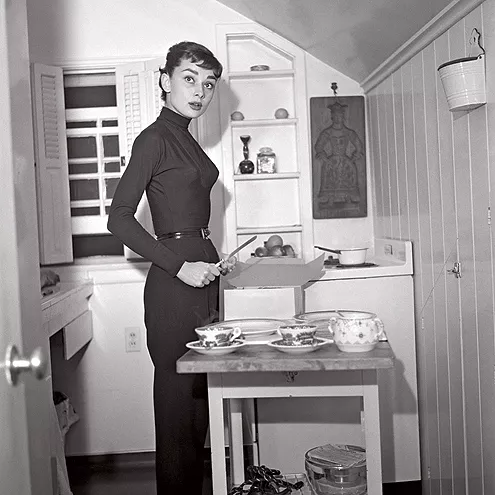 Audrey Hepburn, pictured on the outskirts of Rome in 1954, enjoyed her favorite “junk food”—pasta with ketchup—on TV nights with her kids. “It’s surprisingly good,” says her son Luca with a laugh.