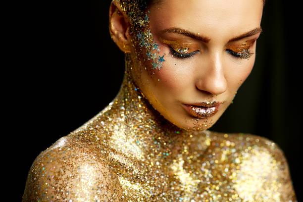 In the 1940s, body glitter was primarily applied to the décolletage, shoulders, and collarbone. Today, it’s more common to see glitter applied all over the body, including the face and hair.
