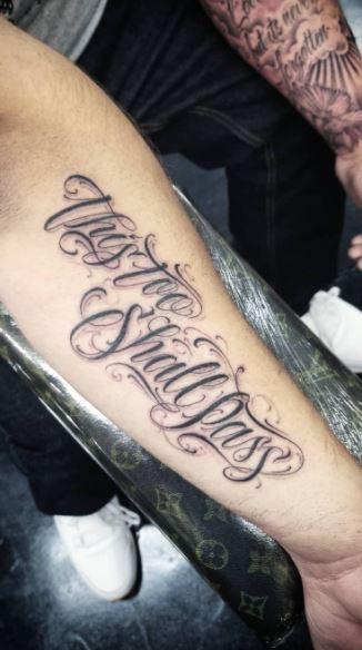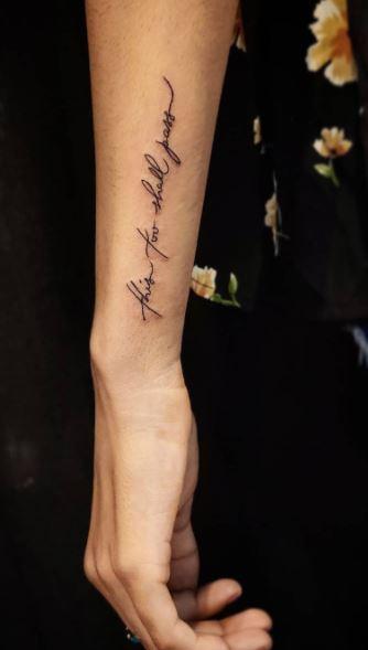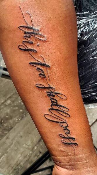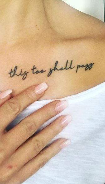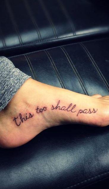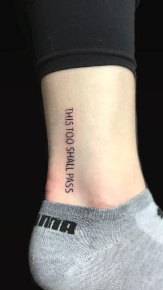 For a smaller design, the ankle is a great spot for a “This too shall pass” tattoo. You can have the phrase inked vertically or use the side of the foot for more space.