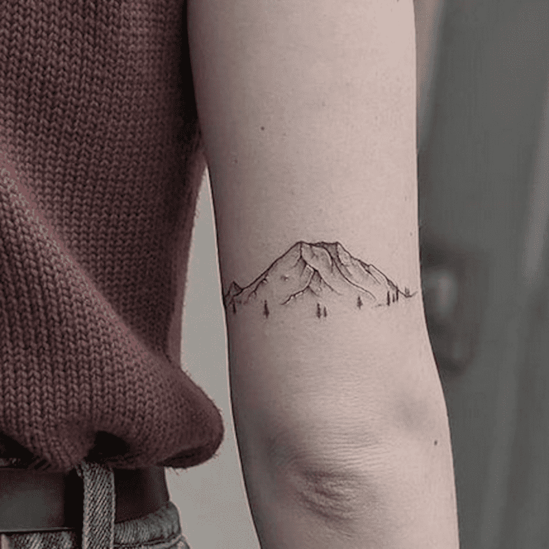 A MOUNTAIN TATTOO ON THE BACK OF THE ARM