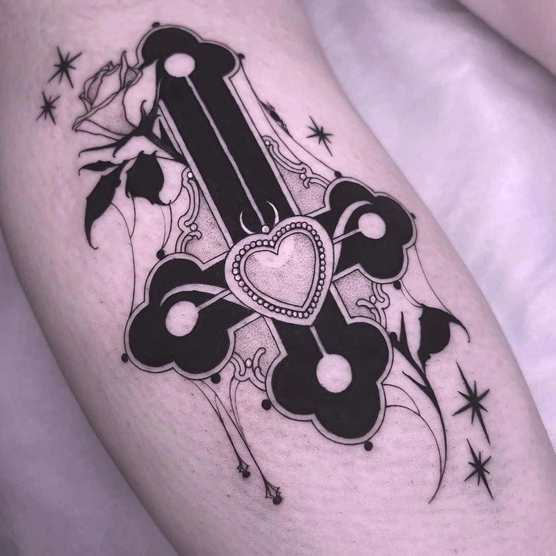 Incorporating a cross into a heart tattoo symbolizes commitment and dedication to marriage and relationships, intertwining love and faith. This tattoo is not only romantic but also carries profound meaning, making it an ideal choice for newlyweds and couples who share a deep bond.