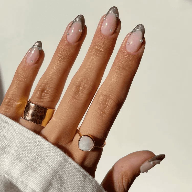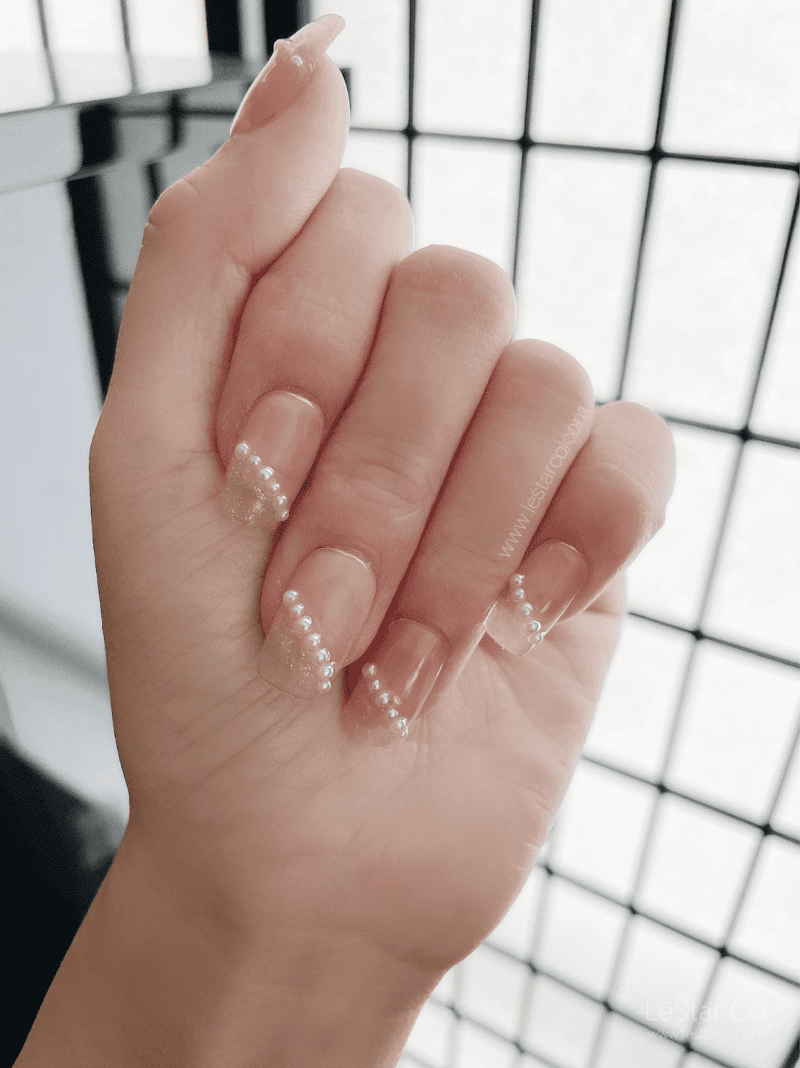 For a touch of understated elegance that whispers “mermaid,” try pearl-lined French tips. This design takes the classic French manicure and adds a subtle touch of the sea. Imagine a thin line of delicate pearls following the curve of your French tip, instead of the usual white polish. These pearls can be tiny and almost invisible, or slightly larger for a more noticeable effect. You can use white or pearlescent tips underneath the pearls to create a soft, glowing look. This design is perfect for those who want a mermaid mani that’s classy and sophisticated. It’s a great choice for work or for anyone who prefers a more subtle approach to nail art.