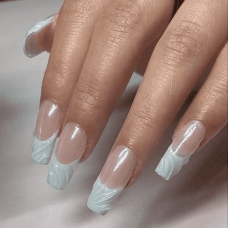 Spruce up the classic French manicure with a refreshing twist – green and blue french tips! This design combines the clean lines of a traditional French mani with the playful colors of the ocean. Imagine the cool blues of the deep sea meeting the vibrant greens of a coral reef. You can use a light, pastel green for the tips and a deeper, cooler blue for a beautiful contrast. This design is perfect for those who want a mermaid mani that’s both modern and elegant. It’s a subtle nod to the sea theme that’s still fun and eye-catching. For an extra touch, you can add a tiny shimmer or glitter line at the base of the tips to make them shine.
