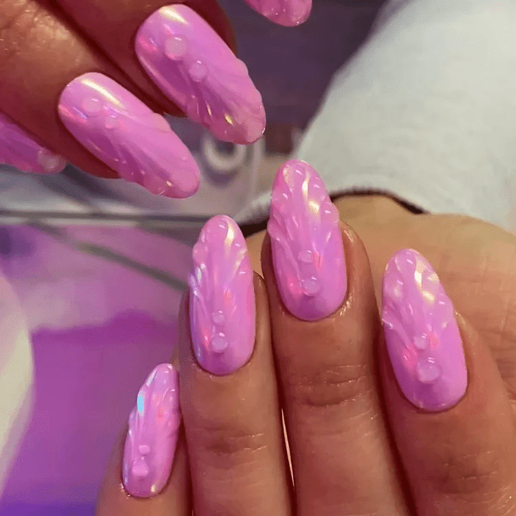 Take your mermaid nails to a whole new dimension with 3D pearly seashells! This technique adds some serious wow-factor to your manicure. Imagine tiny, sculpted seashells made from a shimmery, pearlescent gel that looks just like real pearls. These 3D seashells can be placed on top of your painted nails, creating a beautiful textured effect. You can even add a tiny touch of glitter or a single, colorful bead inside the shell for an extra pop of fun. This is a perfect choice for those who want a unique and eye-catching mermaid mani that’s sure to turn heads. Just be sure to find a nail artist who specializes in 3D nail art to achieve this stunning look.