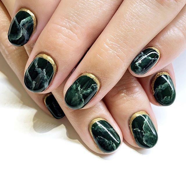 Paint your nails a rich emerald green and add shimmering gold leaf for a fancy, luxurious look. It’s perfect for special occasions and goes great with a green dress.