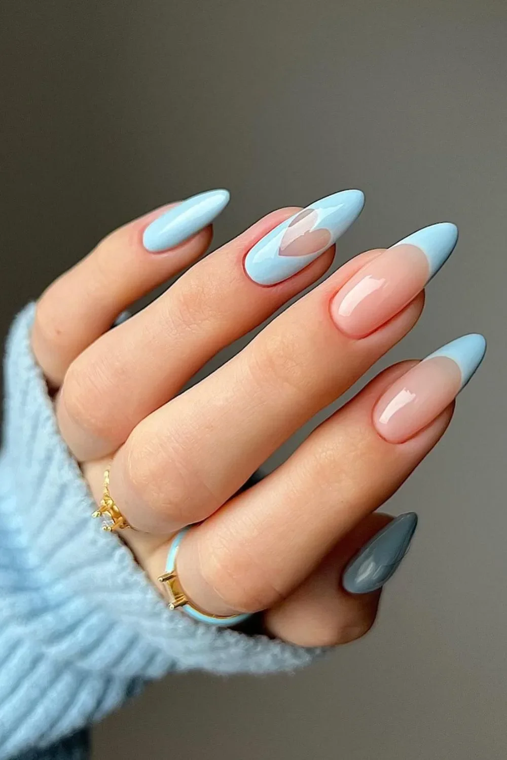 Negative Space Heart: Minimalist heart designs in light blue, perfect for a subtle yet romantic look.