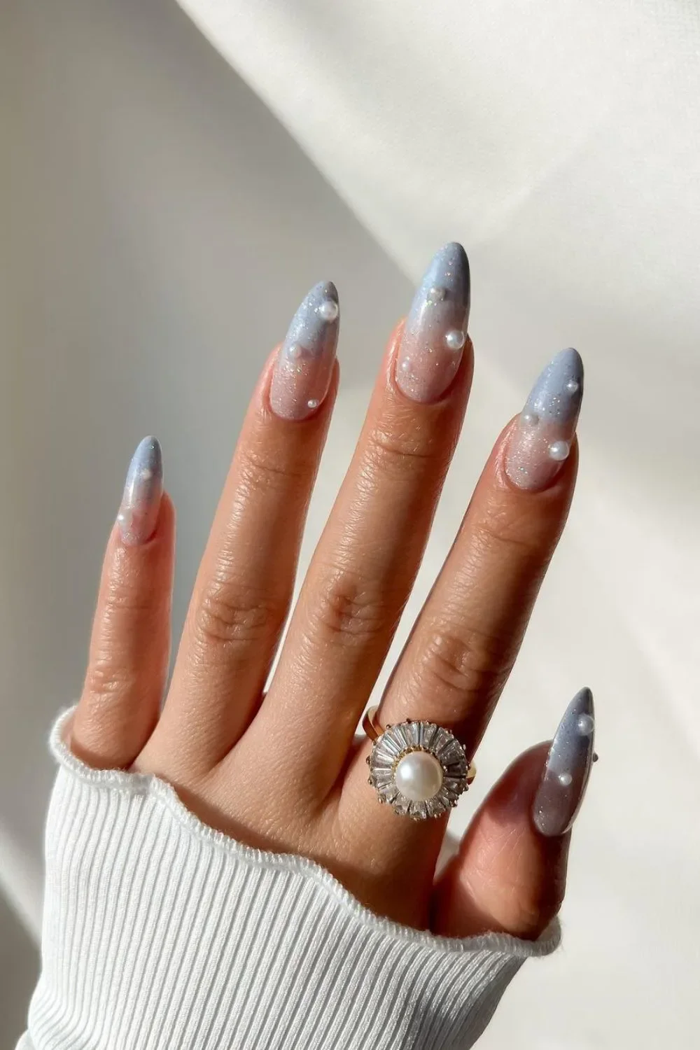 Pearl Nails: Elegant and classy, light blue pearl-studded nails add a touch of luxury.