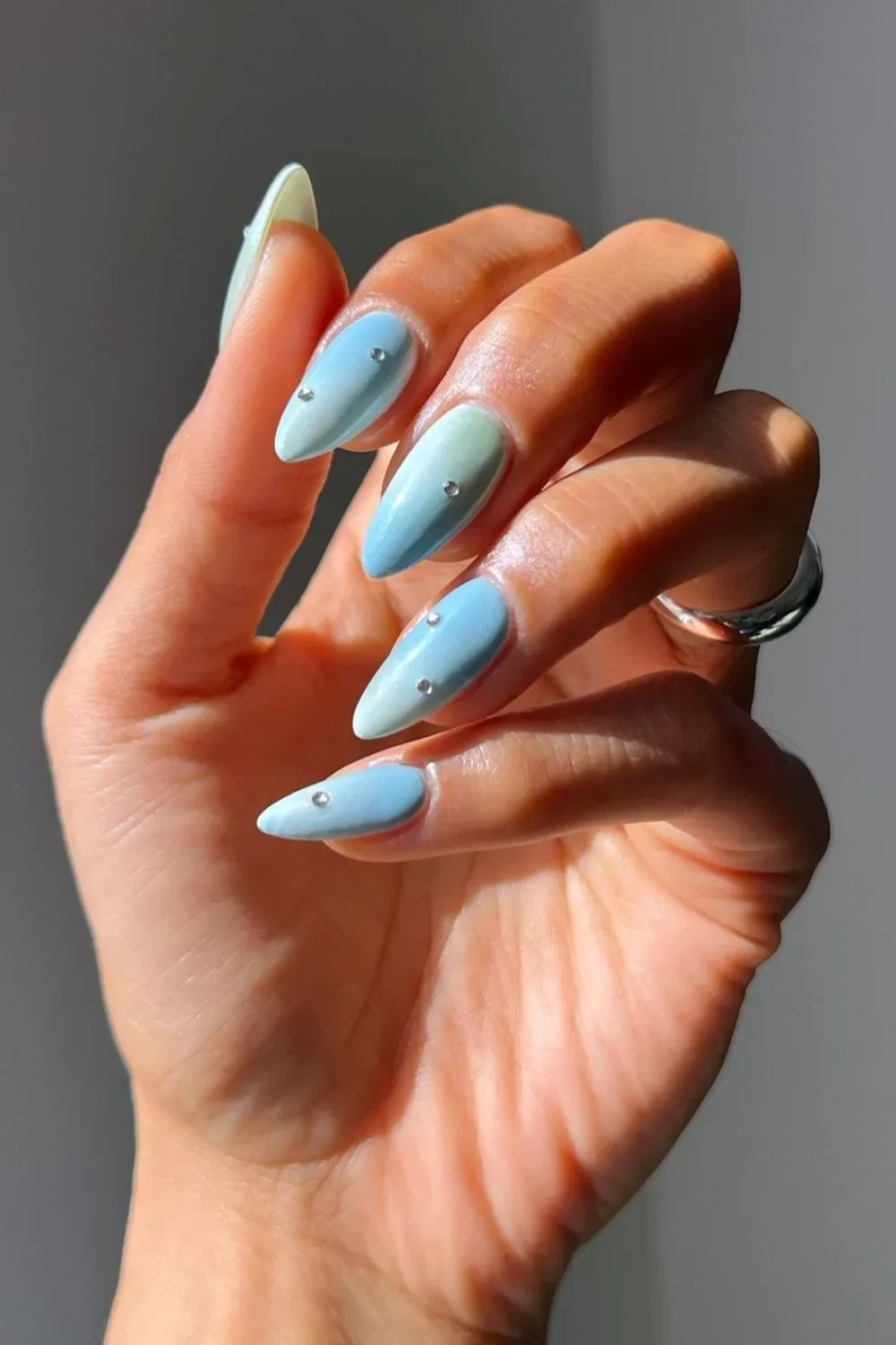 Studded Ombre: Elevate your ombre nails with studs for a unique twist on the light blue gradient.