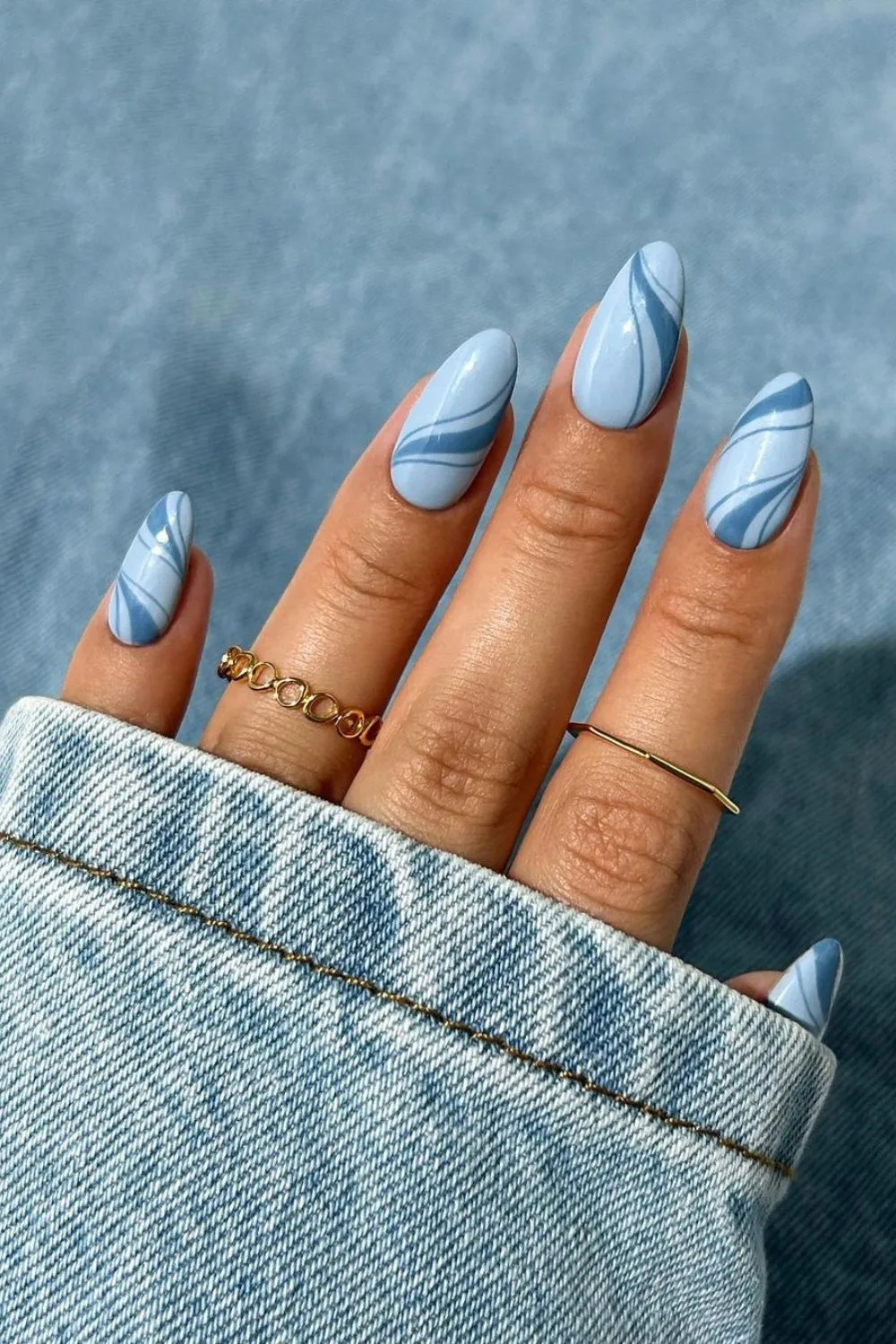 Blue Swirls: Fun and playful swirls in light blue make for a creative and whimsical mani.