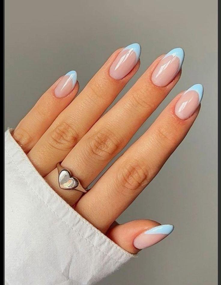 Two-Tone Frenchies: Modernize your French tips with a stylish two-tone blue combo.