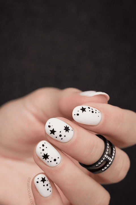 BLACK AND WHITE STAR NAILS